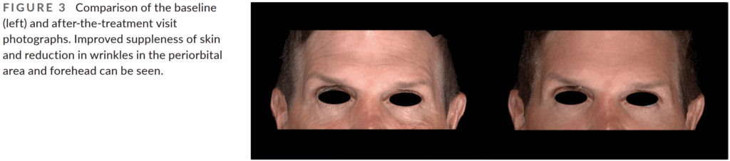 가장 주목할 만한 결과는 바로 리프팅 효과입니다. 3개월 후 평가에서 평균 23%의 눈썹 및 볼 리프팅 효과가 나타났습니다! 이는 통계적으로 매우 유의미한 수치입니다 (눈썹 p=3.14×10−12, 볼 p=6.00×10−15).2